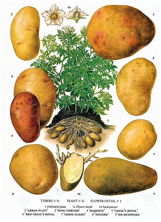 Nog even terug naar de aardappel. De aardappel (Solanum tuberosum) maakt deel uit van de Nachtschadefamilie (Solanaceae). Alles van de aardappelplant is giftig, met uitzondering van de wortel, de aardappel zelf. De Spanjaarden aangevoerd door Jiménez de Quesada en natuurlijk op zoek naar goud, liepen in 1537 een leeg dorp binnen in het tegenwoordige Colombia waarvan de bewoners waren gevlucht. Ze vonden daar maïs en “pappas”, de aardappel.
