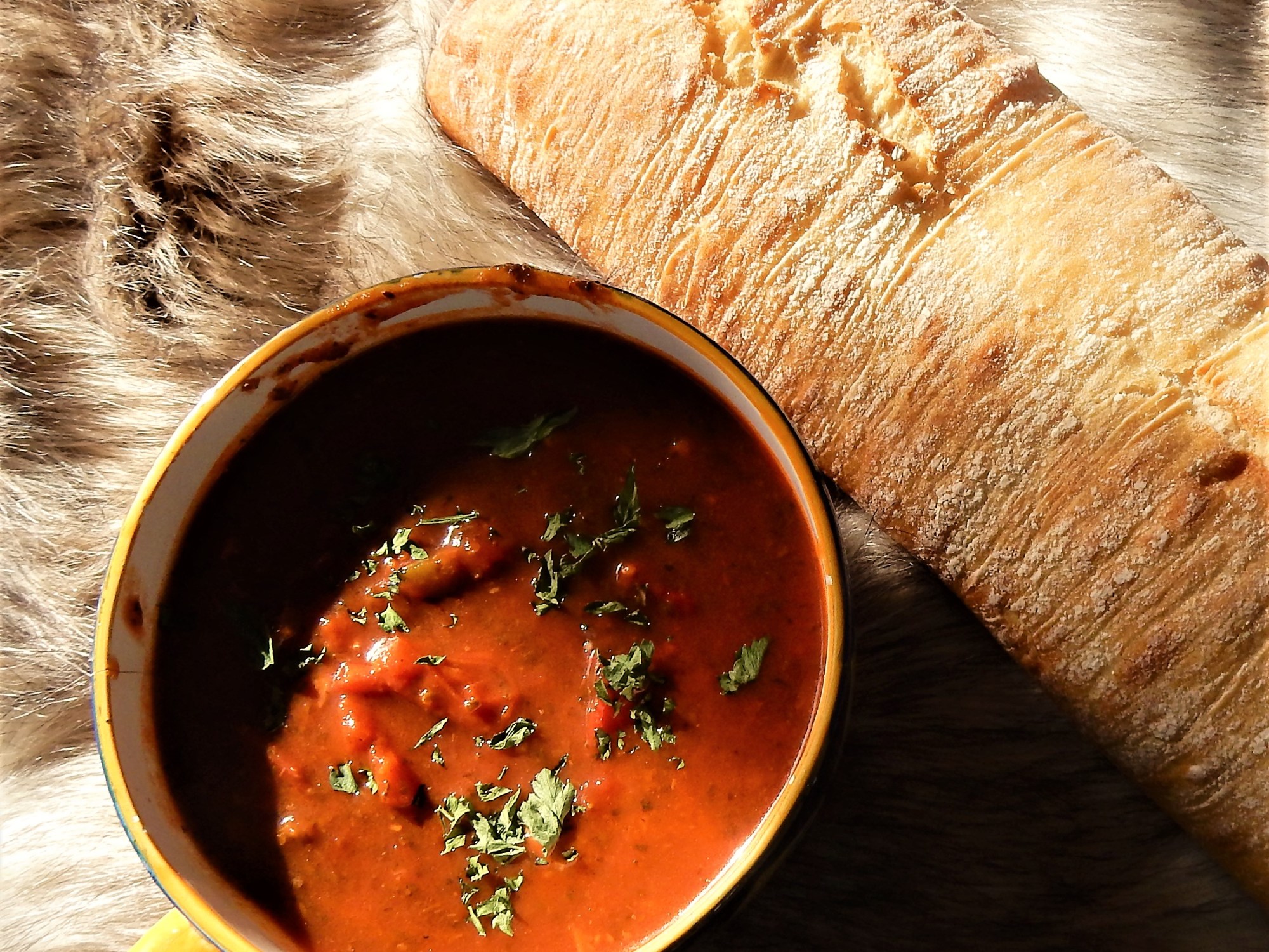 Tomatensoep: lekker, simpel en ietsje anders. Ik ben gek op soep en ga er een aantal maken om op mijn blog te zetten. Deze blog is de eerste (2017) in de serie. Het zal je meteen opvallen dat deze soep boordevol tomaat zit. Gepelde tomaten uit blik zijn eigenlijk beter dan verse tomaat omdat er meer smaak in zit. Maar we doen van alles wat!
