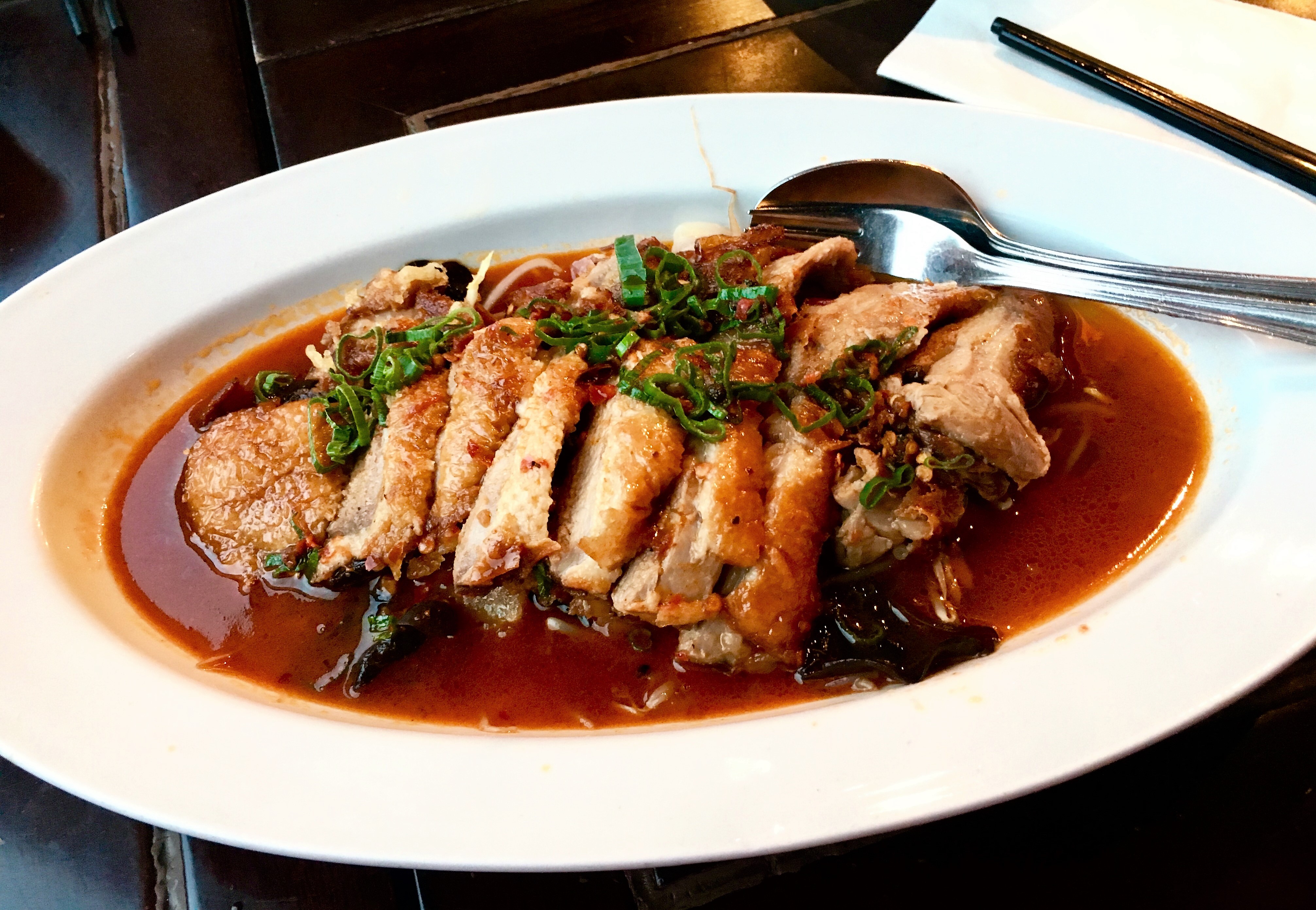 Ik hou van eend, dus de Sichuan eend besteld, nou die was lekker, niet normaal meer! Heel mals met voldoende Sichuan bloemen in een zeer lekkere saus. Eend hoort vet te zijn want dat komt de smaak ten goede. Het bruine vlees was met vlagen krokant en de saus was zo lekker dat ik het maar door mijn kommetje rijst heb gedaan. Lekker met thee.