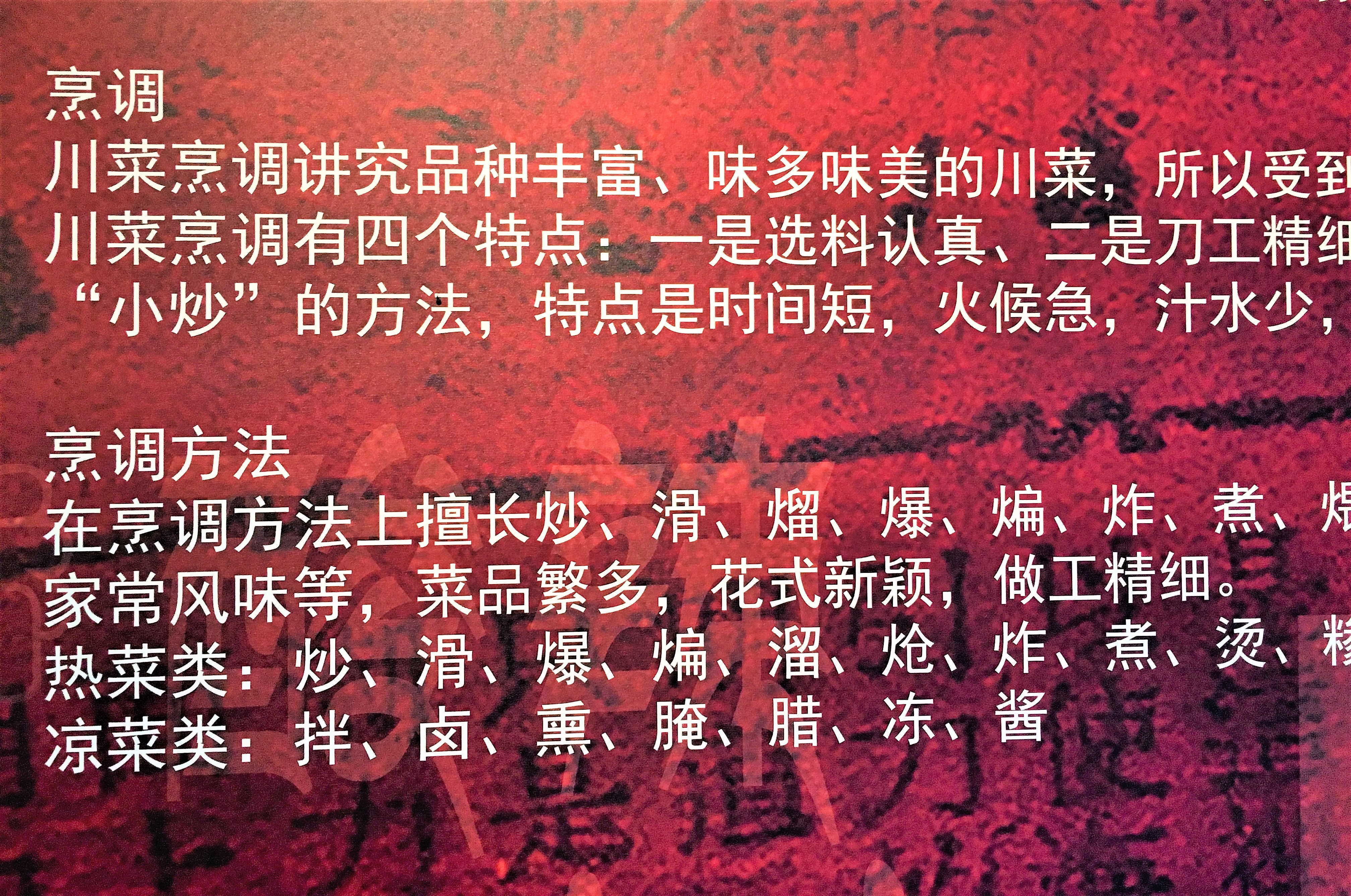 De unieke smaaksensatie van vooral de Sichuan peper (ma) en de gedroogde chili pepers (la) is uniek voor deze Chinese keuken en wordt ook wel Ma La genoemd.