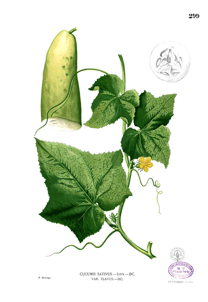 De komkommer is een plant en wordt vooral rauw in een salade gegeten. Men denkt dat de komkommer al ongeveer 1000 jaar voor onze jaartelling gekweekt werd. Deze plant behoort tot de soort Cucumis sativus. De vruchten van de gekweekte rassen die bij ons in de supermarkten liggen zijn meestal tussen de 35 en 40 cm met een diameter van ongeveer 5 cm. Het gewicht ligt tussen de 350 en 450 gram. In Engeland zie je veel minikomkommers, deze zijn 20 tot 30 cm lang. De snackkomkommers hebben een formaat tussen de 8 en 20 cm.