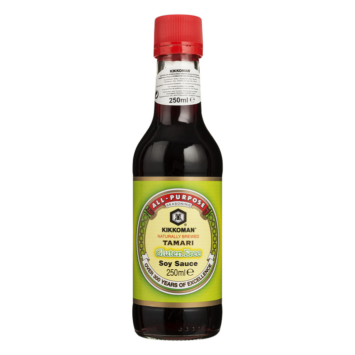 Tamari is een sojasaus die bereid wordt zonder gebruik te maken van geroosterde tarwe (derhalve glutenvrij). Het smaakt minder zoetig en meer Umami dan de normale sojasaus. Gewoon in de supermarkt te krijgen.