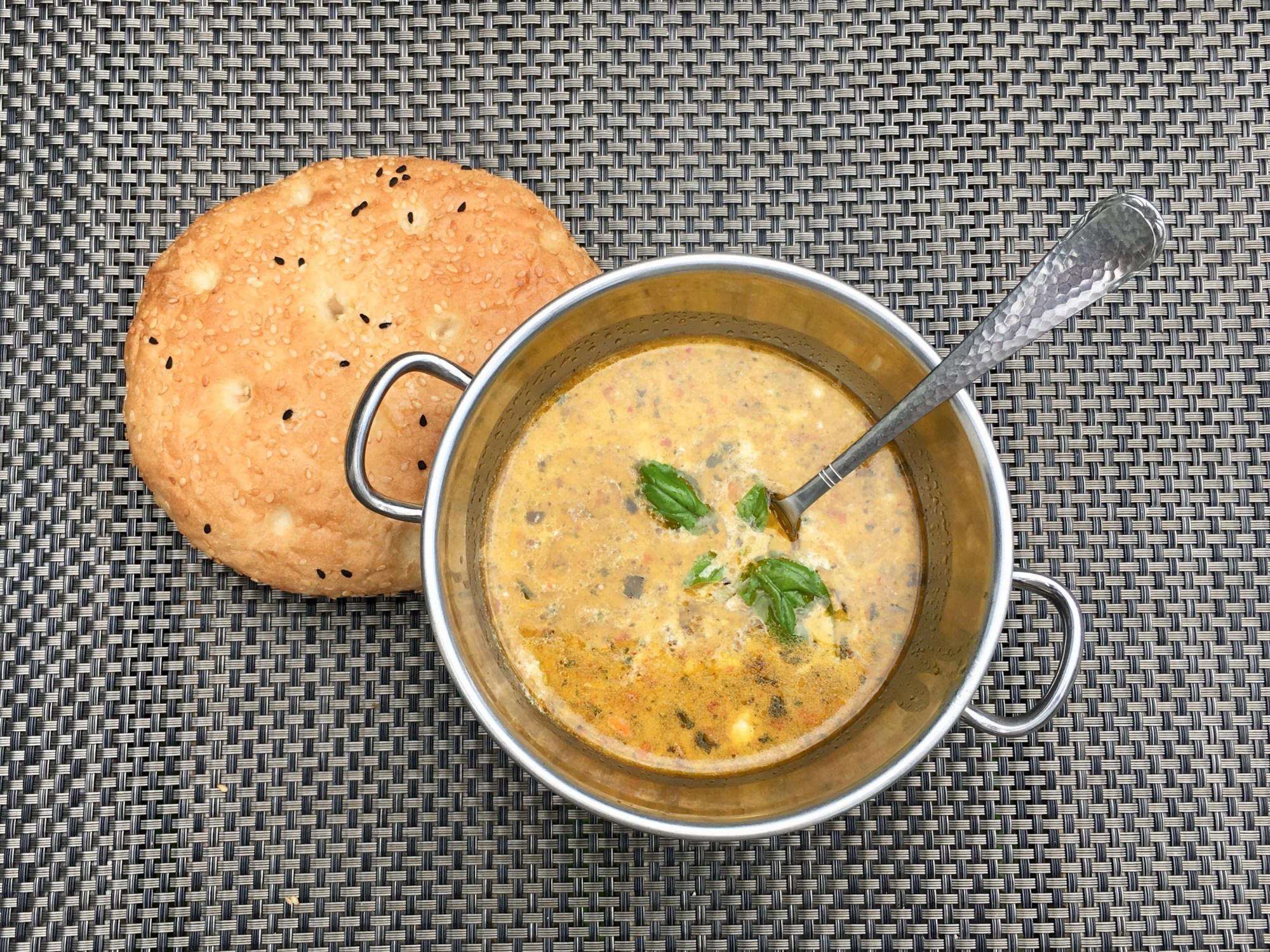 Serveren met lekker warm brood, zoals ciabatta of olijfbrood.