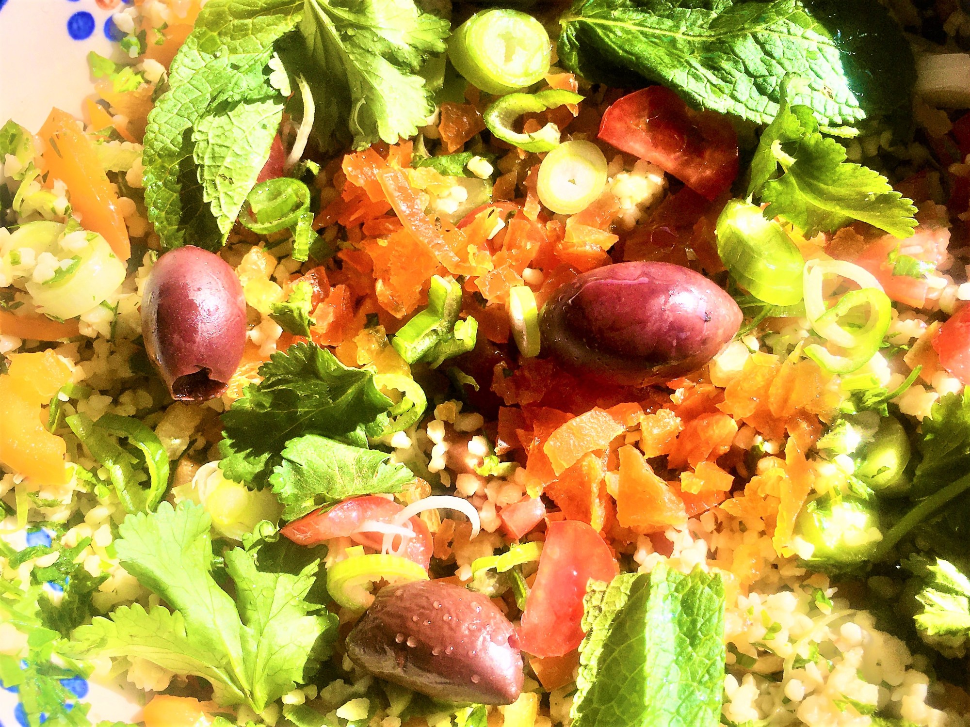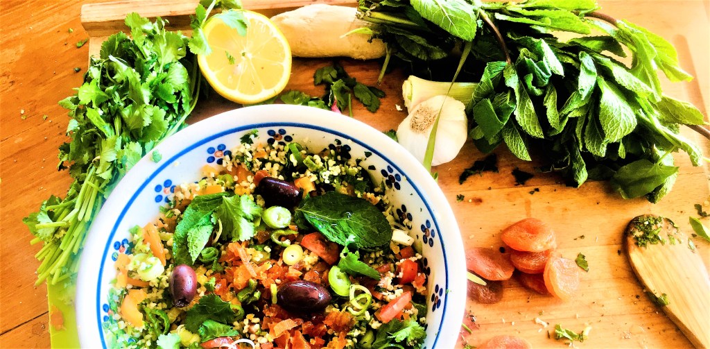 Nu gaan we deze salade bereiden. Eerst het traditionele recept in zover mogelijk zoals het gegeten wordt in het Midden Oosten. De verhoudingen zijn totaal anders dan die in onze wereld, maar veel gezonder en het heeft een prachtige kleur en smaak. Daarna een meer aangepast recept met ook additionele ingrediënten die ik zelf lekker vindt.