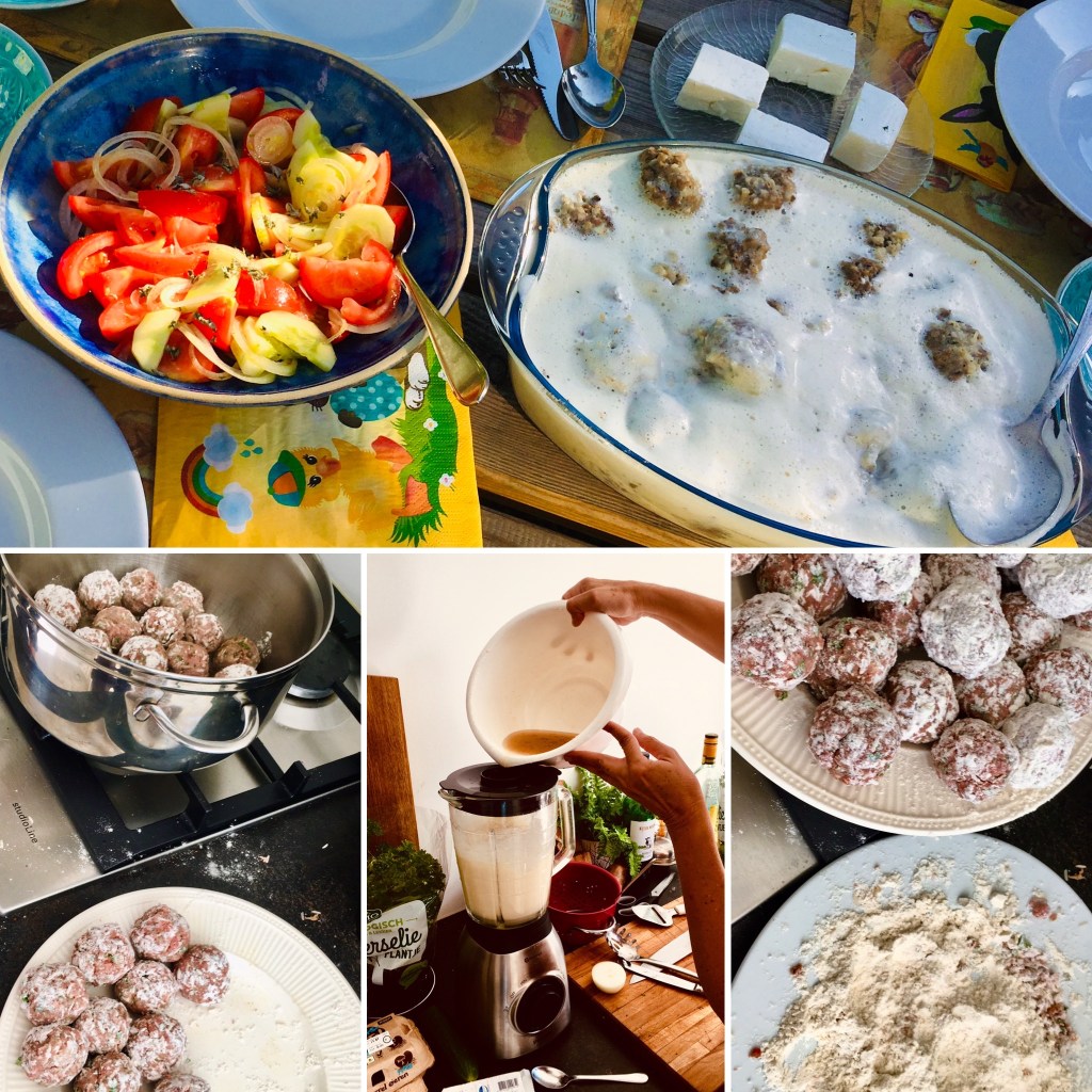 Avgolemono oftewel αυγολέμονο in het Grieks komt van de woorden ei (αυγό ) en citroen (λεμόνι ) en is letterlijk een saus gemaakt van ei en citroen en de bouillon van het vlees wat je aan het bereiden bent. In ons geval zijn dat de gehaktballetjes en daar beginnen we dan ook mee.