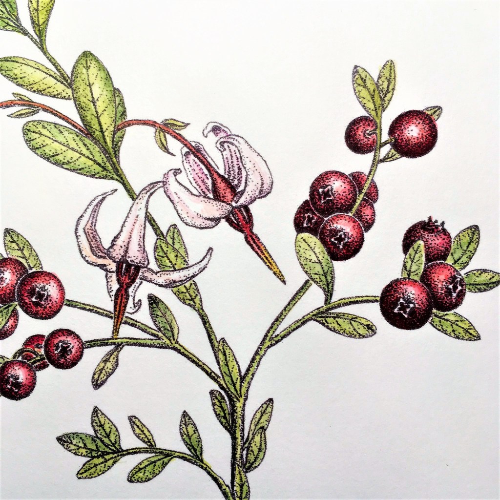 De cranberry (Vaccinium macrocarpon ) is een plant uit de heidefamilie (Ericaceae). Het is een kruipende of overhangende plant met dunne stengels. De bloem lijkt een beetje op een kraanvogel (crane) en dat werd cranberry. Maar het is gewoon de veenbes.