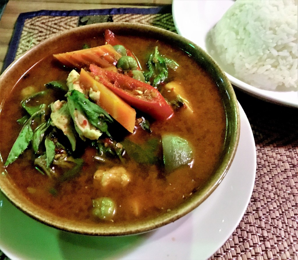 Ben je van plan om het Noorden van Thailand te bezoeken, sla dan het stadje Pai niet over. Je kunt er goedkoop overnachten en het heeft elke avond een erg leuke food market. De perfecte locatie voor je eerste jungle curry! Bedenk wel dat de jungle curry op zich erg heet hoort te zijn. Waarschijnlijk vraagt de serveerster of je dat wel weet. Je kunt aangeven of je spicy of extra spicy wil hebben. Niet stoer doen, gewoon “normal” bestellen en proeven of je het wat vindt! De meeste toeristen die van chili houden voegen deze curry aan hun vaste repertoire toe. En onthoud, zoet helpt tegen (te) hete chili, dus drink er (zoete) thee bij of een koud vruchtendrankje. Bier helpt helaas niet! Let ook op hoeveel witte ui ze in gerechten doen, helaas is dat vaak veel te veel omdat witte ui nou eenmaal niets kost en je dit gerecht al vaak onder de drie euro kan krijgen.