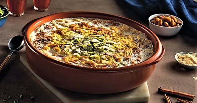 Traditioneel wordt dit gerecht gemaakt van khari-koekjes uit Iran. Die zijn er niet in Nederland. Wij hebben de Palmiers, en dat is een goede vervanger omdat ze gemaakt zijn van bladerdeeg. Zelfs croissants of Zeeuwse bolussen kunnen gebruikt worden.