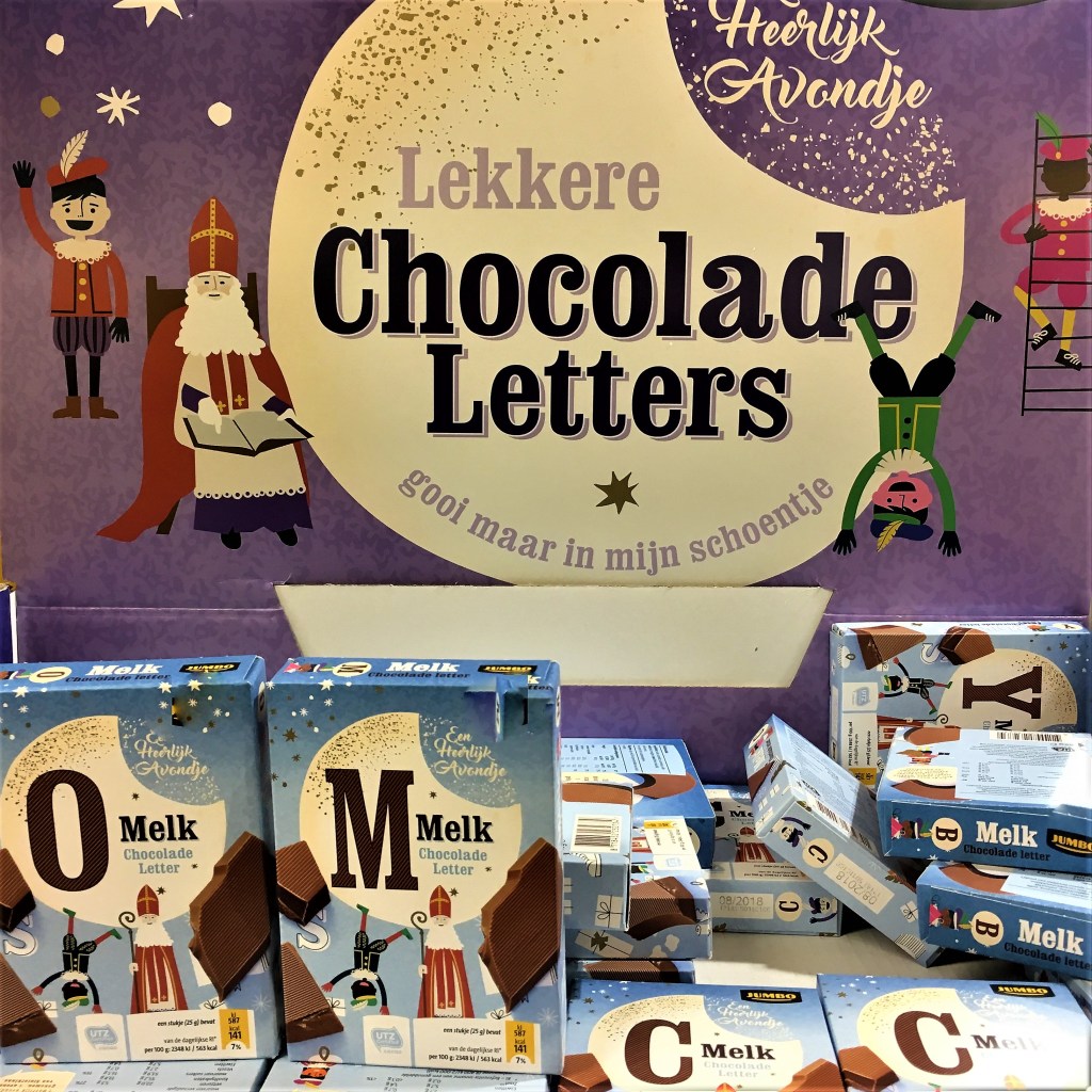 Lang geleden tijdens de Middeleeuwen waren het de kloosterscholen die kinderen leerden schrijven. Dat werd gedaan met letters van brooddeeg die als losse letters tot woorden konden worden gelegd. De beloning voor goede spelresultaten was dat de leerling de letters mocht opeten. Van oorsprong mochten alle arme kindertjes hun schoen in de kerk (15de eeuw) zetten en de rijken vulden die met onder andere snoepgoed. Het resultaat werd onder de kinderen verdeeld op 6 december, de sterfdag van onze Sint. In de 16de eeuw mochten kinderen de schoen in de huiskamer zetten met een wortel voor het paard van Sinterklaas. De ouders wisselden dat om voor snoepgoed, ik kan mij nog die gevulde chocolade kikkers herinneren! Op 5 december werden alle cadeautjes onder een laken gelegd en het bedoelde kind werd aangeduid met een letter van brooddeeg die kon worden opgegeten. Later, rond 1850, werd de banketletter (boterletter) populair tijdens het Sinterklaas feest, een letter gemaakt van bladerdeeg in de letters S (Sinterklaas) en M (Myra, tegenwoordig ook Moeder). Daarna kwamen de chocolade letters (rond 1900) in zwang, deze zijn van het lettertype Egyptienne. De meest verkochte letter is de M omdat het voor Mama en Moeder staat en omdat de prinsessen namen Margriet en Marijke hen intrede deden. En natuurlijk kopen wij als Nederlander de letter M het meest want die lijkt de grootste, maar in gewicht zijn alle letters tegenwoordig het zelfde, niet in oppervlakte natuurlijk!
