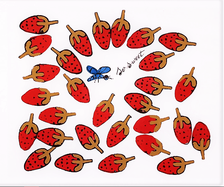 Je moet weten dat de film Wild Strawberries in 1957, geschreven en geregisseerd door Ingmar Bergman, in de New Yorkse bioscopen draaide. Deze film sloeg in als een bom. Andy raakte geïnspireerd en schilderde in 1958 So Sweet, een leuk schilderij van wilde aardbeien.