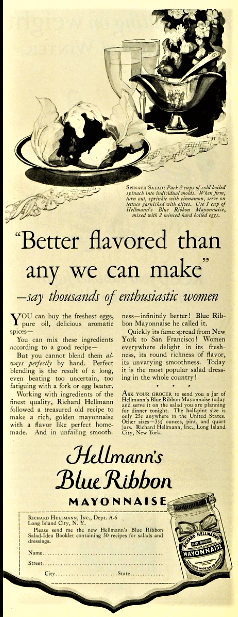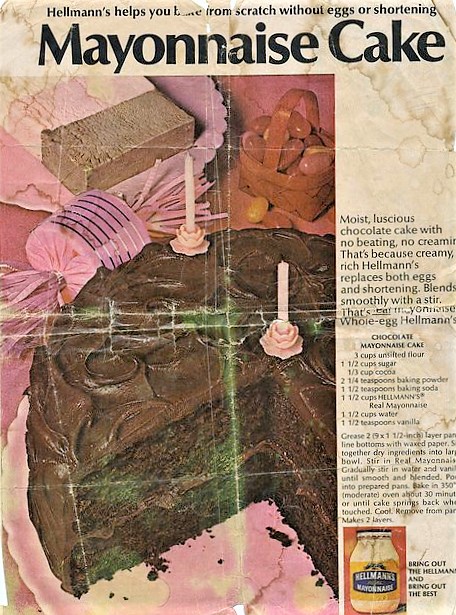 Het bedrijf Best Foods geeft in 1937 een kookboekje uit Cookies with Personality: Exciting New Recipes for Cakes, Cookies and Frostings. Mevrouw Paul Price, de vrouw achter een Hellmann’s distributeur voor Best Foods ontwikkelde een chocolade mayonaise cake dat een Amerikaanse klassieker is geworden.
