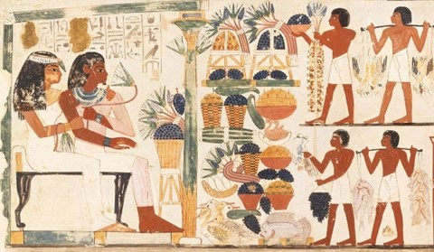 Onze beroemde Egyptishe koningin werd geboren gedurende de Ptolemaeïsche dynastie (305 – 30 v. Chr.) en heette officieel Cleopatra VII (69-30 v.Chr.), wij mogen, net als de Amerikanen, Cleo zeggen. Haar vader was de farao Ptolemaeus XII (117 – 51 v.Chr.) Cleo was een jonge lotus dus (18 jaar) toen ze het overnam van haar vader, onbeschermd in een tijd waar iedereen met macht werd vermoord, vaak door gif toegevoegd aan het koninklijke eten. We hebben een goed idee van wat de welgestelden aten in de tijd van Cleopatra omdat er op de muurschilderingen in de graftombes veel kunst is aangetroffen dat laat zien wat er aan voedsel meegebracht moest worden naar het hiernamaals.