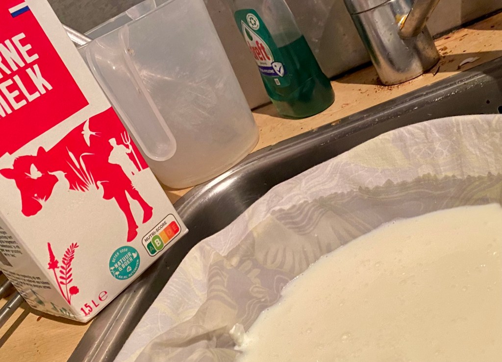 2 ltr karnemelk, als het kan koop het op de boerderij.