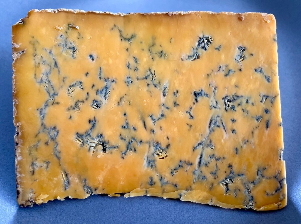 Shropshire Blue minder pittig dan een Stilton met een kleine zweem zoet. De Engelse Shropshire herken je aan z’n oranje zuivel met blauwe aderen. Deze kaas kan heel goed op de plank vanwege de prachtige kleur die komt van de natuurlijke kleurstof Anatto die wordt gebruikt. De kaas werd voor het eerst gemaakt in de jaren zeventig in de Castle Stuart zuivel in Inverness, Schotland, door Andy Williamson, een kaasmaker die was opgeleid in het maken van Stilton-kaas in Nottinghamshire. Een moderne kaas dus! Ik las op een kaas webside de kaas heeft aroma’s van gecondenseerde melk en stal, wat bedoelen ze daar nu mee? Mest en karamel?