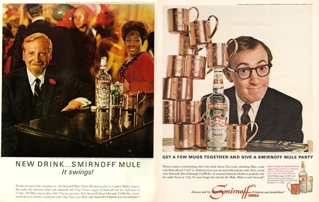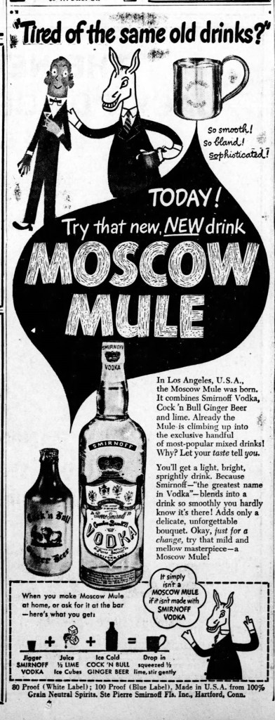 Voordat de Cock ’n Bull bar in 1987 zijn deuren sloot, was deze vanaf 1937 al 50 jaar een vaste plek voor Hollywood beroemdheden op de Sunset Strip. De barman Wes Price had in 1940 zijn opslagruimte vol met kratten ginger beer. Wes besloot om de Hollywood artiesten op het moment dat ze binnen kwamen een Moscow Mule aan te bieden. Het sloeg aan en na de Tweede Wereld Oorlog maakte John Martin daar gebruik van en startte een zeer succesvolle campagne met Hollywood artiesten. Ook dat werd een succes en het drankje werd cool, hip en happening zoals dat tegenwoordig zo mooi heet.