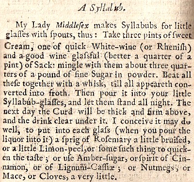 Erg handig van het boek van onze Digby is dat hij onder de possets de recepten van de syllabubs heeft gezet.